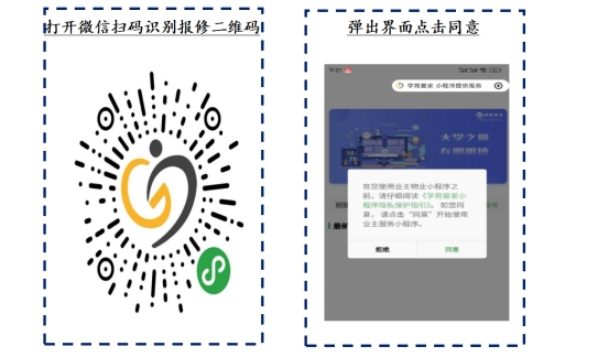 1.微信扫码下方二维码 → 点击“同意”进入小程序。(图示如下)。