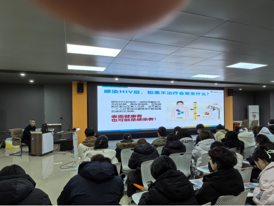 讲座按“艾滋病的基础知识、流行趋势、防护措施”三模块展开。李主任以动态PPT演示HIV攻击CD4细胞全过程,澄清“日常接触不传播”等误区;通报2024年全球及我国疫情数据,强调青年为重点防控人群;重点阐释暴露前预防用药(PrEP)和暴露后72小时“黄金阻断”流程。互动环节,李主任结合典型案例与学生讨论,逐一给出医学建议