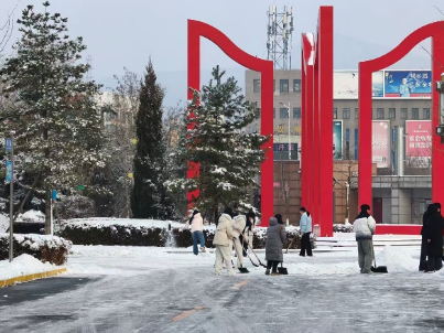 12月23日凌晨,本溪市迎来今冬最强降雪,校园积雪厚重,主干道通行受阻。学校第一时间启动应急预案,后勤管理处迅速调集融雪剂、铁锹、推雪板等物资,并协调铲车进校。各学院负责人一线指挥,学生积极集结、分片包干。铲车先行打通主干道,学生以班级为单位包干到片,机械与人工无缝衔接,效率显著提升。